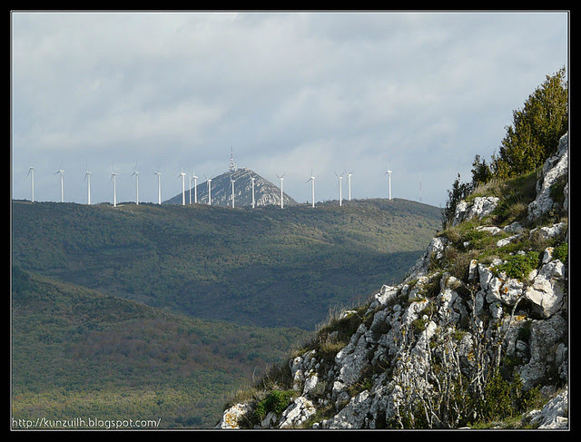 Ya en la pista del Parque Eólico no me resta más que recorrerla (giro a la derecha) unos 3 km. y medio hasta que la deje para tomar el sendero que sube a la Peña de Unzué.